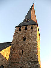 There are three castles remaining within the municipal area of Hattingen.[2] Isenburg Castle was built in the 12th century in the hillsides above the Ruhr. The castle was destroyed in 1225, but prominent ruins remain. Blankenstein Castle was built in the 13th century above the Ruhr river and Haus Kemnade is a moated castle from the 16th century. All three castles are famous tourist landmarks and open to the public.