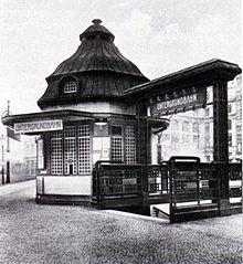 The station designed by Alfred Grenander opened on 1 October 1908 with Berlin's second U-Bahn line, running from Potsdamer Platz on the initial Stammstrecke route to Spittelmarkt. During an air raid on 3 February 1945 it was devastated by a direct bomb hit and could not be reopened until 1950.[1]