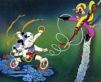 The name of the movie (大闹天宫) became a colloquialism in the Chinese language to describe someone making a mess. Countless cartoon adaptations that followed have reused the same classic story Journey to the West, yet many consider this 1964 iteration to be the most original, fitting and memorable.[1]