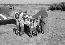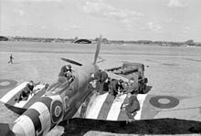 By April 1944, the Tempest V had attained general acceptance and was in the hands of operational squadrons; 3 Squadron was the first to be fully equipped, closely followed by 486 (NZ) Squadron (the only Article XV squadron to be equipped with the Tempest during the Second World War), replacing their previous Typhoons.[23] A third unit—56 Squadron—initially kept its Typhoons and was then temporarily equipped with Spitfire IXs until sufficient supplies of Tempests were available.[47][nb 10] By the end of April 1944, these units were based at RAF Newchurch in Kent a new "Advanced Landing Ground" (ALG), where they formed 150 Wing, commanded by Wing Commander Roland Beamont. The new Wing was part of the Second Tactical Air Force (2nd TAF).