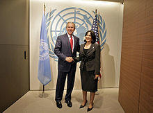 Haya was the President of the 61st session of the United Nations General Assembly which began on September 12, 2006, and closed on September 17, 2007. She was the third woman to hold the position since Vijaya Lakshmi Pandit of India and Angie Elisabeth Brooks of Liberia were appointed to the presidency in 1953 and 1969 respectively. She was elected by acclamation after Bahrain was chosen as its candidate by the group of Asian nations. In addition to being the first woman president since 1969, Haya was the first woman Muslim president.[3]