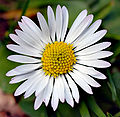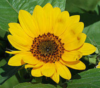Pseudanthia are characteristic of the daisy and sunflower family (Asteraceae), whose flowers are differentiated into ray flowers and disk flowers, unique to this family. The disk flowers in the center of the pseudanthium are actinomorphic and the corolla is fused into a tube. Flowers on the periphery are zygomorphic and the corolla has one large lobe (the so-called "petals" of a daisy are individual ray flowers, for example). Either ray or disk flowers may be absent in some plants: Senecio vulgaris lacks ray flowers[4] and Taraxacum officinale lacks disk flowers.[4][5] The pseudanthium has a whorl of bracts below the flowers, forming an involucre.