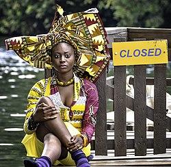 A head tie is a women's cloth head scarf that is commonly worn in many parts of West Africa and Southern Africa. The head tie is used as an ornamental head covering or fashion accessory, or for functionality in different settings. Its use or meaning can vary depending on the country and/or religion of those who wear it. There are varying traditional names for headties in different countries, which include: gele (Nigeria), duku (Malawi, Ghana), dhuku (Zimbabwe), tukwi (Botswana), and doek (South Africa, Namibia).[1]