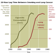More observational evidence was published throughout the 1930s, and in 1938, Science published a paper showing that tobacco users live substantially shorter lives. It built a survival curve from family history records kept at the Johns Hopkins School of Hygiene and Public Health. This result was ignored or incorrectly explained away.[14]