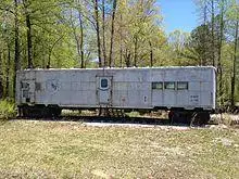 The museum displays over forty pieces of rolling stock, spanning the early-to-late 20th century including passenger, railway post office, and freight cars. Numerous passenger cars have been restored and are now used on the museum’s excursions. Birthday parties are hosted in a restored dining car adjacent to the visitors center.[1] Many of the freight and passenger cars are awaiting restoration from damage previously incurred while stored in an unsecured location