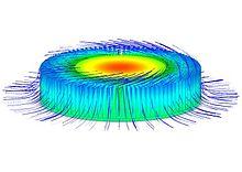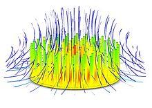 An electrostatic fluid accelerator (EFA) is a device which pumps a fluid such as air without any moving parts. Instead of using rotating blades, as in a conventional fan, an EFA uses an electric field to propel electrically charged air molecules. Because air molecules are normally neutrally charged, the EFA has to create some charged molecules, or ions, first. Thus there are three basic steps in the fluid acceleration process: ionize air molecules, use those ions to push many more neutral molecules in a desired direction, and then recapture and neutralize the ions to eliminate any net charge.