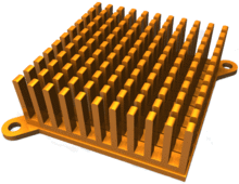 All electronic devices and circuitry generate excess heat and thus require thermal management to improve reliability and prevent premature failure. The amount of heat output is equal to the power input, if there are no other energy interactions.[1] There are several techniques for cooling including various styles of heat sinks, thermoelectric coolers, forced air systems and fans, heat pipes, and others. In cases of extreme low environmental temperatures, it may actually be necessary to heat the electronic components to achieve satisfactory operation.[2]