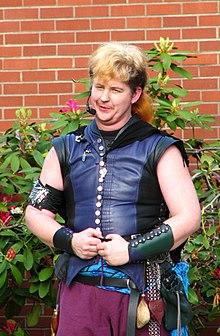 Alexander James Adams performing with Tricky Pixie in 2009 at Faerieworlds. | |
