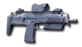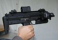 HK MP7A1 with a suppressor, extended magazine and Elcan reflex sight | |