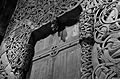 Within the church there is also a reliquary, made of wood in the shape of a miniature church (called a chasse) with gilt-brass mountings and with scenes from the Bible[5] and the martyrdom of Thomas Becket.[6] Like the stave churches themselves the reliquary is ornamented with dragon-heads on its gables, a feature which several Norwegian medieval reliquaries share and which might have been originally inspired by similar dragon-heads on the silver gilt reliquary of St. Olav on the enshrined on the high altar of the Nidaros Cathedral.[7][8] This reliquary was the principal source of inspiration for coat of arms of Sør-Aurdal. Another source of inspiration for this coat of arms was the Reinli stave church. Also preserved in the church is the wooden litter for bearing this reliquary in processions, as well as a brass censer with Limoges enamel and a wooden pax-board.[9][10]