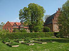Heiligengrabe Abbey (literally in English: Holy Sepulchre; formerly also known as Techow) was founded here as a Cistercian nunnery in 1289 by Heinrich, Bishop of Havelberg and the Margrave Otto of Brandenburg, initially for 12 nuns. It held an important relic in the form of a Bleeding Host which, so it was said, had been violated in a host desecration by a Jew.