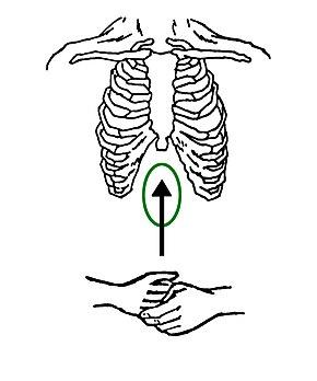 If the victim can not receive pressures on the abdomen (for example, in case of pregnancy or excessive obesity), chest thrust are advised instead.[18] These are applied on the lower half of the chest bone, but not in the very endpoint (which is the xiphoid process and could be broken).