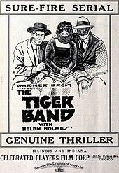 In 1919 and 1920 she made only one film each year and only two in each of the next three years. During those years she not only starred in, but also produced, a seral film by the Warner Brothers called The Tiger Band (1920).[14] Between 1924 and 1926 Helen Holmes made eighteen more short adventure films, but her popularity began to wane in a market over-saturated with female cliffhanger films. Holmes made several Westerns opposite actor and rodeo performer Jack Hoxie in the mid-1920s.