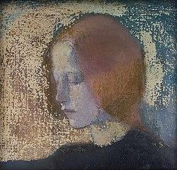 Girl with Blonde Hair (1916) is an example of Schjerfbeck's mature style, drawing on French Modernism. The work belongs to a series (including also The Family Heirloom of the same year) featuring neighbours of Schjerfbeck, Jenny and Impi Tamlander, who ran errands for Schjerfbeck and her mother and helped look after the family home. Here the sitter is Impi. The painting realized £869,000 at a 2015 Sotheby's London sale.[14] Schjerfbeck was included in the 2018 exhibit Women in Paris 1850–1900.[15]