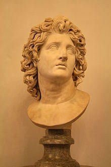 A mosaic found in the Vatican Necropolis (Mausoleum M) depicts a figure very similar in style to Sol/Helios, crowned with solar rays and driving a solar chariot. Some scholars have interpreted this as a depiction of Christ, noting that Clement of Alexandria wrote of Christ driving his chariot across the sky.[39] Some scholars doubt the Christian associations,[40] or suggest that the figure is merely a non-religious representation of the sun.[41]