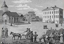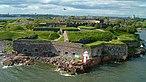 Helsinki was established as a trading town by King Gustav I of Sweden in 1550 as the town of Helsingfors, which he intended to be a rival to the Hanseatic city of Reval (today known as Tallinn).[25] In order to populate his newly founded town, the King issued an order to resettle the bourgeoisie of Porvoo, Ekenäs, Rauma and Ulvila into the town.[26] Little came of the plans as Helsinki remained a tiny town plagued by poverty, wars, and diseases. The plague of 1710 killed the greater part of the inhabitants of Helsinki.[25] The construction of the naval fortress Sveaborg (in Finnish Viapori, today also Suomenlinna) in the 18th century helped improve Helsinki's status, but it was not until Russia defeated Sweden in the Finnish War and annexed Finland as the autonomous Grand Duchy of Finland in 1809 that the town began to develop into a substantial city. Russians besieged the Sveaborg fortress during the war, and about one quarter of the town was destroyed in an 1808 fire.[27]