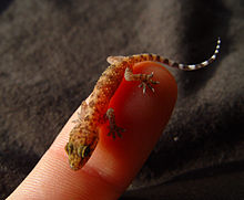 Hemidactylus is a genus of the common gecko family, Gekkonidae. It has 174 described species, newfound ones being described every few years. These geckos are found in all the tropical regions of the world, extending into the subtropical parts of Africa and Europe. They excel in colonizing oceanic islands by rafting on flotsam, and are for example found across most of Polynesia. In some archipelagoes, cryptic species complexes are found.[2] Geckos like to live in and out of houses. They have been introduced to Australia.