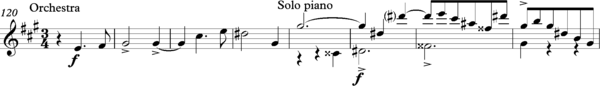 Later in the nineteenth century, Tchaikovsky frequently used hemiolas in his waltzes, as did Richard Strauss in the waltzes from Der Rosenkavalier, and the third movement of Robert Schumann's Piano Concerto is noted for the ambiguity of its rhythm. John Daverio says that the movement's "fanciful hemiolas... serve to legitimize the dance-like material as a vehicle for symphonic elaboration." [19]