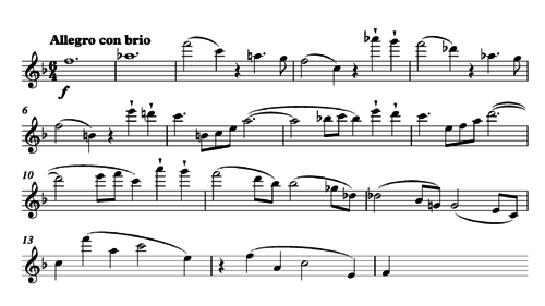 2 (a so-called hemiola). Metrical ambiguity arises in the very first appearance of the motto [opening theme]."[20]