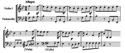 8, commoner at certain earlier and later periods, were far from usual in 1800, and here they are made to sound especially eccentric owing to frequent sforzandi on the last quaver of the bar... it looks ahead to later works and must have sounded very disconcerting to contemporary audiences."[18]