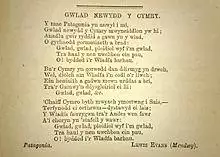 - ^ Axtell, William. ""A song for a new Welsh nation": Patagonian Welsh national anthem discovered in 19th century pamphlet | Culture24". Culture24. Retrieved 14 April 2019.