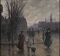 Robert Koehler painting Rainy Evening on Hennepin Avenue c. 1902. The oil on canvas original is at the Minneapolis Institute of Arts