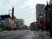 The street has achieved iconic status in Minneapolis culture, memorialized in songs by Tom Waits, The Hold Steady and Lucinda Williams, among others. Its 600 block downtown was once home to Block E, a sometimes-rowdy collection of bars and independent businesses ultimately acquired by the city and demolished in 1988.[6] It is also a popular parade route, used by the annual Aquatennial celebration held in July, and since the 1990s has been the traditional route of the city's LGBTQ Pride parade.