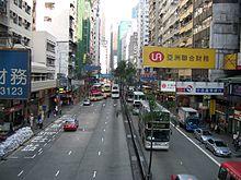 Hennessy Road (Chinese: 軒尼詩道) is a thoroughfare on Hong Kong Island, Hong Kong. It connects Yee Wo Street on the east in Causeway Bay, and Queensway on the western end in Wan Chai.