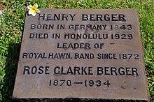 - ^ Mission Houses Cemetery, Honolulu, Hawaiʻi, Grave memorial of Henri Berger