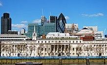 The historic headquarters of HM Customs was the Custom House on Lower Thames Street in the City of London. This went on to become the headquarters of HMCE when the Excise head office moved there from Somerset House in 1909. Later, however, the Commissioners along with most of the headquarters staff were forced to move out after the building was damaged in a bombing raid in December 1940. They moved initially to Finsbury Square, then in 1952 to the newly built King's Beam House in Mark Lane.[6] The damaged section of London's Custom House was later rebuilt and the building remains in use by HM Revenue and Customs as of 2018. In 1987 the headquarters staff moved again to New King's Beam House 22 Upper Ground London SE1 in the area of Southwark.