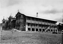 In July 1881 the residents of Herberton had raised £115 for the construction of a school. Herberton Provisional School opened on 12 December 1881 with 35 students in the Herberton Hall; the fee was one shilling per week for the first child of a family with an additional sixpence a week for each additional child.[5][6] In October 1882 the Queensland Government reserved five acres and two roods for a state school and called for tenders to erect a state school and teacher's residence.[7][8] In November 1882 the contract for the buildings was awarded to James Pasley to construct the buildings using hardwood in nine months for £2,040.[9] In April 1883 the Queensland Government officially announced that there would be a new state school in Herberton.[10] The actual opening date of the new state school is unclear but Thomas Peter Wood was appointed headmaster of Herberton State School from 1 January 1884, so the school was operational at that time.[11] In 1912 the school was one of the first five schools in Queensland to receive a secondary department, commencing operations on 15 February 1912 with the arrival of the teacher Miss Ramsay B.A. who would teach two languages, English history, mathematics, and science.[12] In 1994 a new primary school campus was established with the secondary department remaining on the original school site.[13]
