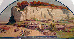 By 1813 three shot towers had been constructed on the bluffs. These were designed for the production of shot balls by dropping molten lead through copper sieves. The balls were then caught in a water basin and taken to an adjoining building, to be turned through cylinders to round and smooth the pellets for use as projectiles in firearms.