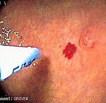 With regards to digestive tract lesions, mild bleeding and mild resultant anemia is treated with iron supplementation, and no specific treatment is administered. There is limited data on hormone treatment and tranexamic acid to reduce bleeding and anemia. Severe anemia or episodes of severe bleeding are treated with endoscopic argon plasma coagulation (APC) or laser treatment of any lesions identified; this may reduce the need for supportive treatment. The expected benefits are not such that repeated attempts at treating lesions are advocated.[7] Sudden, very severe bleeding is unusual—if encountered, alternative causes (such as a peptic ulcer) need to be considered[7]—but embolization may be used in such instances.[1]