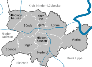 Herford (German pronunciation: [ˈhɛʁfɔʁt]) is a Kreis (district) in the northeastern part of North Rhine-Westphalia, Germany. Neighboring districts are Minden-Lübbecke, Lippe, the urban district of Bielefeld, and the districts Gütersloh and Osnabrück.