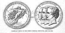 In 1869, a commemorative medal honoring the discovery of the 100th asteroid shows the profiles of John Russel Hind, Hermann Goldschmidt and Robert Luther.[13]