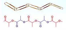 While at Karlsruhe and later, Zurich, Staudinger began research in the chemistry of rubber, for which very high molecular weights had been measured by the physical methods of Raoult and van 't Hoff. Contrary to prevailing ideas (see below), Staudinger proposed in a landmark paper published in 1920 that rubber and other polymers such as starch, cellulose and proteins are long chains of short repeating molecular units linked by covalent bonds.[7] In other words, polymers are like chains of paper clips, made up of small constituent parts linked from end to end (Figure 3).