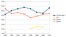 Its candidates returned were Conservative except for siding with the Labour Party's landslide victory which returned the Attlee Ministry (in 1945). Conservative Richard Reader Harris saw a slim 2.25% majority at the 1966 election which saw the start of the Second Wilson Ministry.