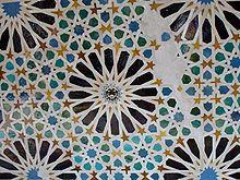 Hexadecagrams (16-sided star polygons) are included in the Girih patterns in the Alhambra.[7]
