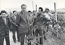 Aliyev was elected First Secretary of the Central Committee of the Azerbaijan Communist Party at its Plenary Session held on 12 July 1969, amidst a Soviet anti-corruption campaign.[20][24][25] Aliyev made some progress in the fight against corruption: a number of people were sentenced to prison terms; and in 1975, five factory and collective farm managers were sentenced to death for gross corruption.[26] In the early 1980s, Aliyev barred the offspring of certain legal personnel from attending the Republic's law school, in a purported effort to curb a self-perpetuating elite based on corruption. In 1977, he visited Iran.[27]