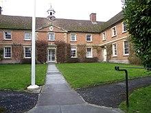 The Hospital of St John and St Katherine was founded in 1442[10] by Walter Hungerford, 1st Baron Hungerford and re-endowed in 1472 by Margaret, widow of his son Robert. The almshouse provided housing for twelve poor unmarried men and one woman (who was responsible for domestic duties), under the oversight of a chaplain or warden appointed by the Chancellor of Salisbury Cathedral. There was a school-house and from time to time a schoolmaster. Around 1769 the hospital burned down and a new building was erected, of two stories around three sides of a courtyard.[27] The architect was Esau Reynolds (1725–1779) of Trowbridge.[28] In 1968 the building was designated as Grade II listed.[29] The hospital continues as a registered charity.[30][31]