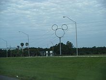 A Hidden Mickey is a representation of Mickey Mouse that has been inserted subtly into the design of a ride, attraction, or other location in a Disney theme park, Disney properties, animated film, feature-length movie, TV series, or other Disney product.[1] The most common Hidden Mickey is a formation of three circles that may be perceived as the silhouette of the head and ears of Mickey Mouse, often referred to by Disney aficionados as a "Classic Mickey".[2] Mickeys may be painted, made up of objects (such as rocks, or three plates on a table), or be references such as someone wearing Mickey Mouse Club ears in a painting. Hidden Mickeys can take on many sizes and forms.