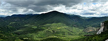 The site is located in a very isolated region with rough terrain, dominated principally by holm oak forest, cactus and other semi desert vegetation.[2][3][4] The "waterfalls" or rock formations are on cliffs of mountains that rise abruptly from the narrow valley floor below.[5] It is located in ethnic Mixe territory,[3] with the two closest communities being San Lorenzo Albarradas and San Isidro Roaguia having populations of 1403 and 320, respectively (2005).[6][7] The springs that produce the rock formations are one of the few water sources in the area.[3]