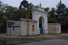 There are various follies on the estate. To the east of the house is the Temple of Diana, erected before 1743 with Ionic order columns from Devonshire House in Piccadilly, which had burnt in 1733, and remodeled by Barry.[39] "Heaven's Gate" is a folly about 60 feet high on Sidown Hill, built in 1749 by Hon. Robert Sawyer Herbert (d. 1769). Other 18th-century follies that can be found on the grounds of the estate include Milford Lake House and Jackdaw's Castle, both attributed to the architect-earl of Pembroke, brother of the owner,[40] and the Etruscan Temple.