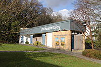 In addition to these, the building boom continued with several other buildings in their own style. The Students' Union building was extended in 2001 to include a new nightclub and cinema facility;[71][72] the Jubilee Sports Centre was completed in 2004 housing a swimming pool, large sports hall and gym located on University Road next to the Students' Union;[73][74][75] an extension to the south of the administration building was opened in 2005 to house a new Student Services Centre[76][77] and a new building for the Institute for Sound and Vibration Research was constructed in 2006 among the Engineering buildings.[78][79][80] The Jubilee Sports Centre and the Student Services Centre were both designed in brick to blend in with the nearby residential and Gutteridge designed buildings.
