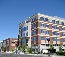 The Hillsboro Civic Center is a government-built, mixed-use development in downtown Hillsboro, Oregon, United States. The development includes the city hall for the county seat of Washington County, located west of Portland, Oregon. Covering 6 acres (24,000 m2), the Civic Center has a total of over 165,000 square feet (15,300 m2) in the complex. The total of six stories for the main structure makes the building the tallest in the city, tied with Tuality Community Hospital. In addition to government offices, the Civic Center includes retail space, public plazas, and residential housing. The complex was built to centralize city government functions under one roof.