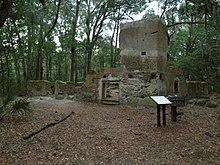 In 1788, a small Episcopal church called the Zion Chapel of Ease was constructed for plantation owners. The chapel's old cemetery, located near the corner of William Hilton Parkway and Mathews Drive (Folly Field), is all that remains. Charles Davant, a prominent island planter during the Revolutionary War, is memorialized there. Davant was shot by Captain Martinangel of Daufuskie Island in 1781.[19] This location is also home to the oldest intact structure on Hilton Head Island, the Baynard Mausoleum, which was built in 1846.