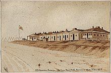 During the Civil War, Fort Walker was a Confederate fort in what is now Port Royal Plantation. The fort was a station for Confederate troops, and its guns helped protect the 2-mile wide (3 km) entrance to Port Royal Sound, which is fed by two slow-moving and navigable rivers, the Broad River and the Beaufort River. It was vital to the Sea Island Cotton trade and the southern economy.[23] On October 29, 1861, the largest fleet ever assembled in North America moved south to seize it.[24] In the Battle of Port Royal, the fort came under attack by the U.S. Navy, and on November 7, 1861, it fell to over 12,000 Union troops.[25] The fort was renamed Fort Welles, in honor of Gideon Welles, the Secretary of the Navy.[26]