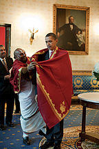 A joint session of the United States Congress was opened with a prayer in Sanskrit (with some Hindi and English added), read by Venkatachalapathi Samudrala, in September 2000, to honor the visit of Indian Prime Minister Atal Bihari Vajpayee. The historic gesture was an initiative by Ohio Congressman Sherrod Brown who requested the US Congress House Chaplain to invite the Hindu priest from the Shiva Vishnu Hindu Temple in Parma, Ohio.[27] Another Hindu prayer was read in the United States Senate on July 12, 2007, by Rajan Zed, a Hindu chaplain from Nevada.[28] His prayer was interrupted by a couple and their daughter who claimed to be "Christian patriots", which prompted a criticism of candidates in the upcoming presidential election for not criticizing the remarks.[29] In October 2009, President Barack Obama lit a ceremonial Diwali lamp at the White House to symbolize victory of light over darkness.