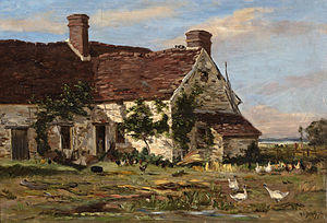 Hippolyte-Camille Delpy studied with Charles-François Daubigny as well as Corot. A contemporary of the Impressionists, Delpy blended the subject matter that he adopted from Daubigny with the brighter colors and looser paint handling that were trademarks of his own generation to create distinctive new visions of many of the landscapes first explored by the Barbizon artists.[1]