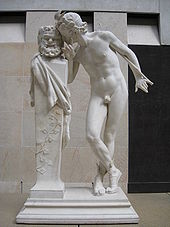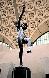 His bronze statue A Lucky Find at Pompeii (Une Trouvaille à Pompei) (1863) depicts a nude boy with a spade dancing for joy with one leg raised, because he has unearthed a Roman statuette. His nude pose reflects that of the statuette itself, possibly indicating that the statue depicts the excavator imagining himself in the original statuette's pose. The statue won a medal at the Paris Salon of 1864 and became his most famous work. The life-size original was bought by the French Government for 7,000 francs and exhibited at the Exposition Universelle in 1867. It now stands on a tall pedestal in the Musée d'Orsay alongside Alexandre Falguière's Winner of the Cockfight on an adjacent pedestal - another bronze nude dancing boy poised on one leg that had also been exhibited at the 1864 Salon.